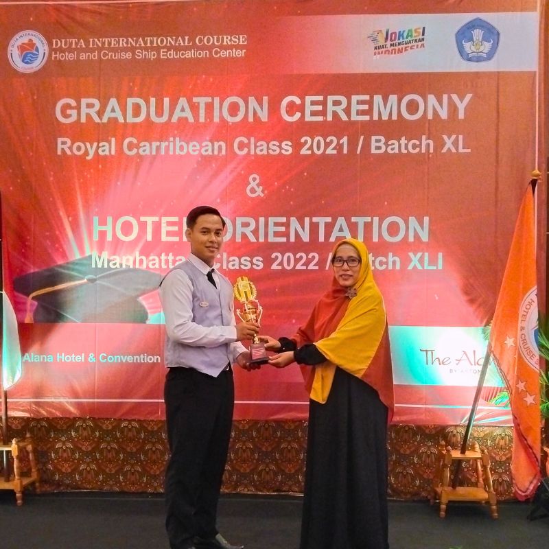 Alhamdulillah berkat ikut program dan bimbingan dari Duta International saya bisa lolos interview user, saya sudah bekerja di Costa Cruise Line 3 tahun , dan sekarang saya bekerja di Silver Sea Cruiseline juga arahan dari Duta international. Terima Kasih Duta international sudah membantu saya bisa bekerja di kapal pesiar, Terbukti dengan Pengajar yang Kompeten di Bidangnya. dan Tentu dengan biaya yang Terjangkau. NO HOAX- SUDAH TERBUKTI